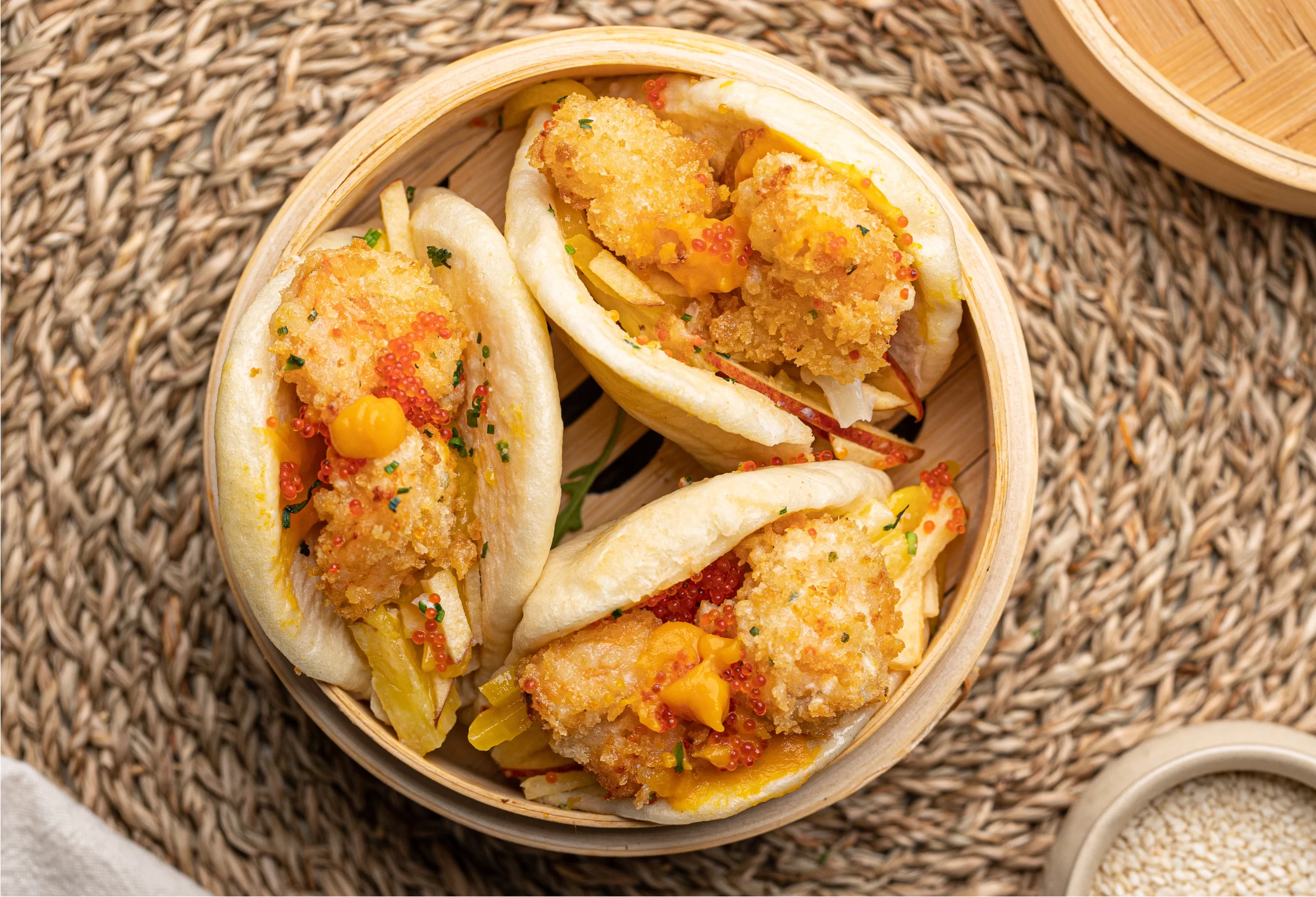 Et que dire de nos Baos à la façon japonaise ? Préparés avec soin, ils vous offrent une collation exotique, comme un sushi dans une tortilla.